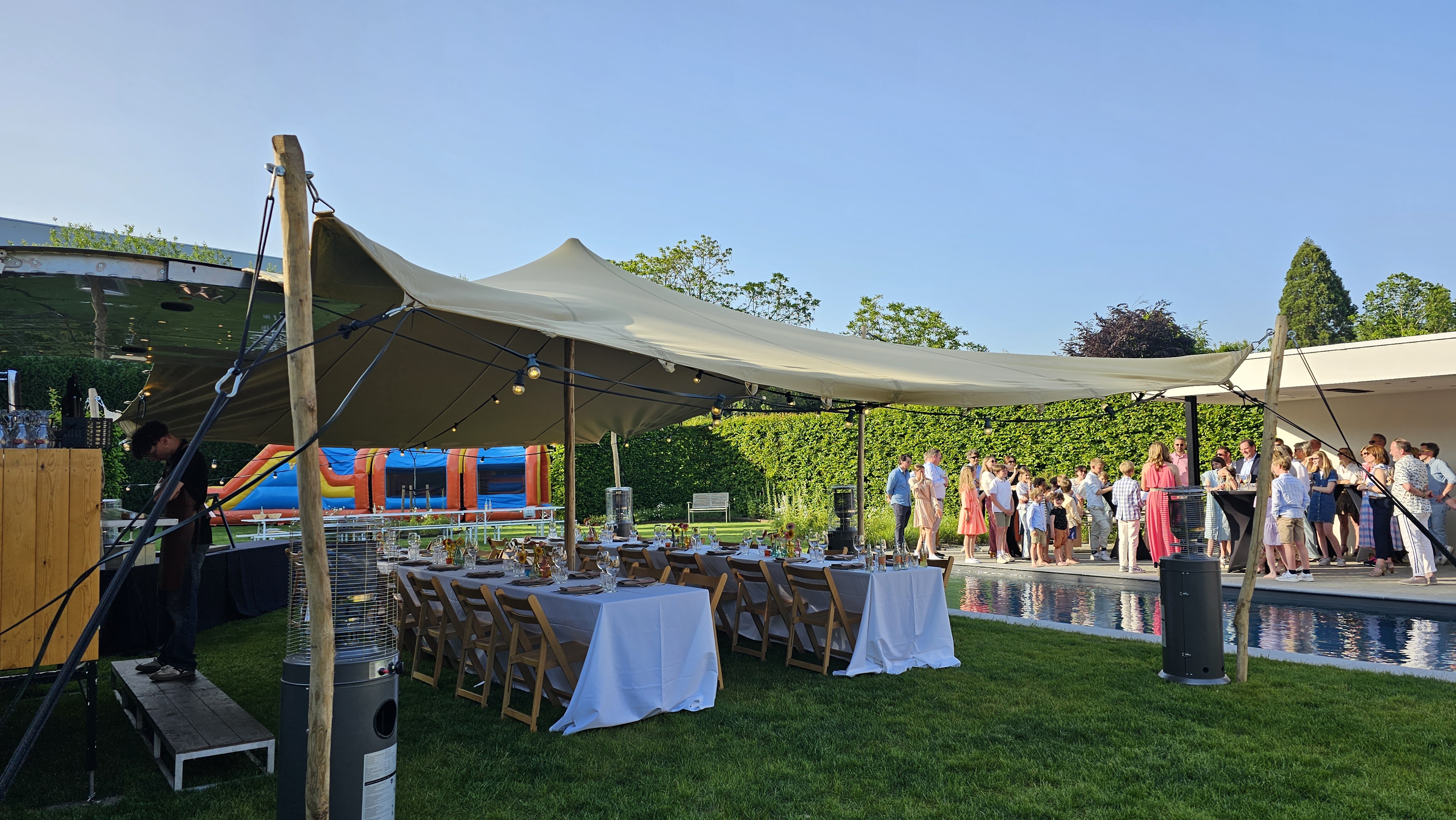 - Verhuur tenten: stretchtent 6x9 meten voor 650 euro/dag, stretchtent 10x9 meter voor 1100 euro/dag, cobinatie stretchtenten 16x 9 aan 1600 euro/dag, zonnetenten 5x10 meter aan 275 euro/dag